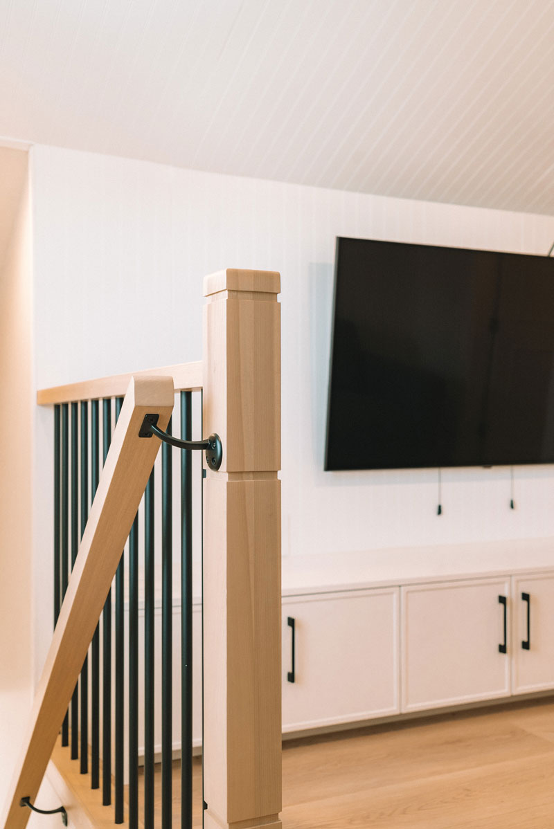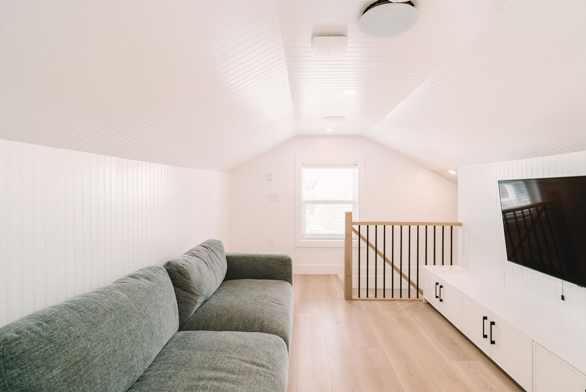 This extensive renovation took and old tired kitchen and transformed it into a modern and functional work of art. This kitchen renovation project also allowed us to work with wood beams on the ceiling to give a unique look. The entire space received new custom cabinetry with elegant hardware, an island update, white quartz tile backsplash and countertop, hood fan, appliances, kitchen sink, hard wood flooring, lighting fixtures, window and doors, plumbing and electrical.